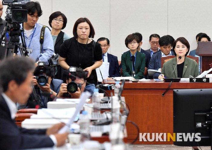 유은혜 사회부총리 겸 교육부 장관이 2일 오전 국회에서 열린 교육위원회 교육부 등에 대한 국정감사에서 의원 질의를 경청하고 있다.