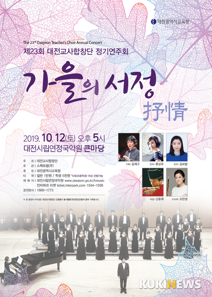 짙어가는 가을, 대전교사합창단의 23번째 정기연주회가 12일 토요일 오후 5시 대전시립연정국악원 큰마당에서 ‘가을의 서정(抒情)’ 타이틀로 펼쳐진다.