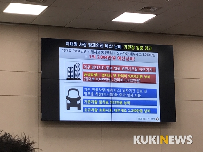 이현재 의원(자유한국당)에 따르면 HUG는 기존 차량의 임차 기간이 끝나지 않았는데도 추가로 업무용 차량을 임차해 기존 차량의 잔여 임차 기간에 해당하는 임차료 933만원을 낭비했다. 신규 업무용 차량에 대한 내부 개조 비용으로는 1243만원을 사용했다.