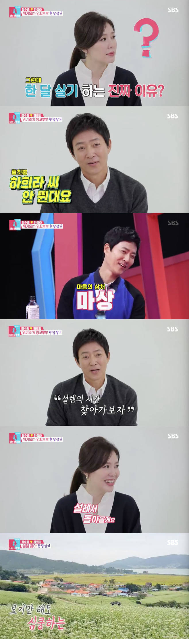 최수종은 하희라와 집을 떠나 낯선 곳으로 한 달 살기를 떠난다고 밝히며 “처음 연애했을 때 느꼈던 설렘을 난 아직도 느낀다. 그런데 하희라 씨는 심장이 안 뛴다고 하더라”라고 말했다