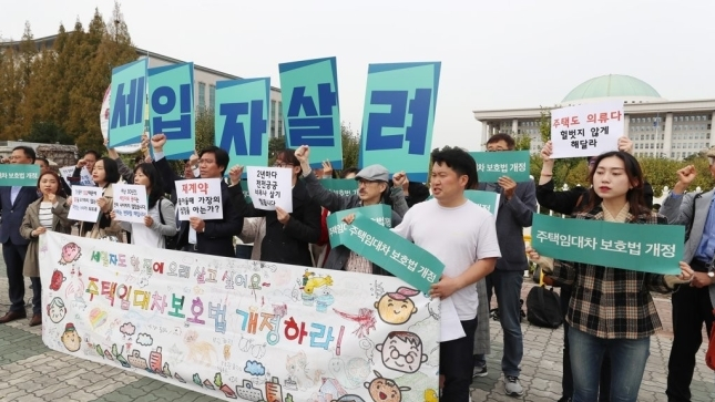 ◇“세입자 보호법 시급”=세입자와 청년, 시민사회단체 등 100여 개 단체로 구성된 주택임대차보호법개정연대는 23일 국회 앞에서 기자회견을 열고 “20대 마지막 정기국회에서 정부와 여당이 합의한대로 주택임대차보호법을 개정하라”고 촉구했다.