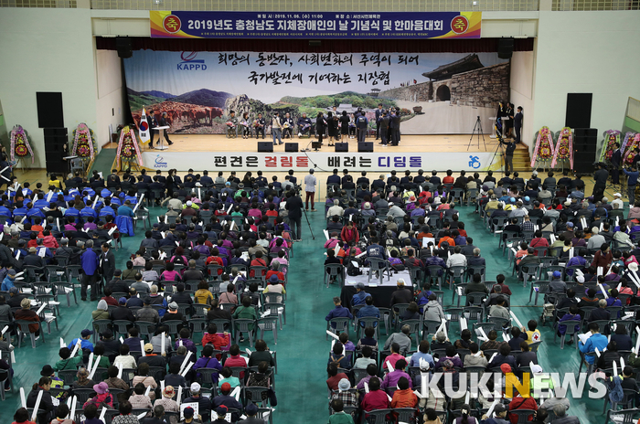 ‘2019 충남 지체장애인의 날 기념식 및 한마음대회’가 양승조 충남도지사와 도내 지체장애인 및 가족, 자원봉사자 등 3000여 명이 참석한 가운데 6일 서산시민체육관에서 개최됐다.