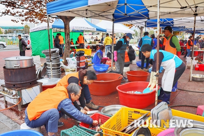 대전공노조 임원진과 조합원, 가족 등 40여 명은 시 자원봉사연합회와 함께 어려운 이웃 350여명에게 닭계장과 떡 등을 무료로 제공하며 훈훈한 온전을 나눴다.