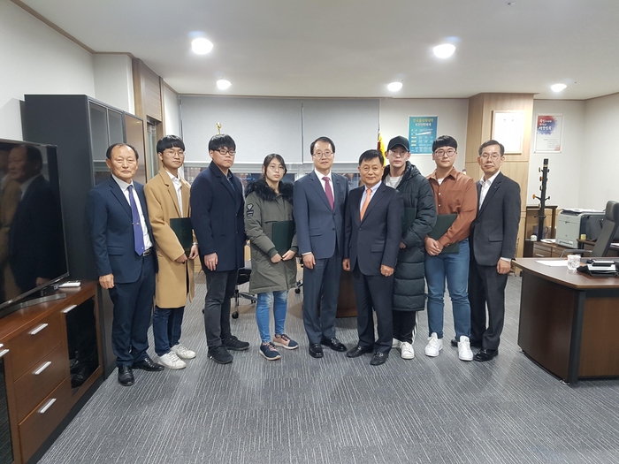 학장직무대행 박봉순 학장, 장학금 기탁자 우신전자산업㈜ 심순택 대표, 강형식 학생처장 등이 참석한 가운데 개최된 전달식에서 녹색산업설비과 조경순 학생 외 4명의 학생에게 장학금 및 장학증서가 전달되었다.
