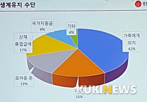 응답환자의 26%는 산재보험이나 국가지원금으로 생계를 유지한다고 응답했고, 그 외 환자들은 가족, 지인, 대출 등을 통해 생계를 유지하고 있다고 응답했다.