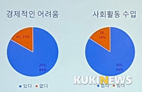 치료에 필요한 병원비 부담은 절반 이상에서 의료보험·의료보호 등을 이용해 자비로 치료받고 있는 것으로 확인됐다. 반면 설문에 응답한 환자 10명 중 8명 이상이 사회활동으로 인한 수입이 없어 경제적인 어려움을 겪고 있다고 응답했다.