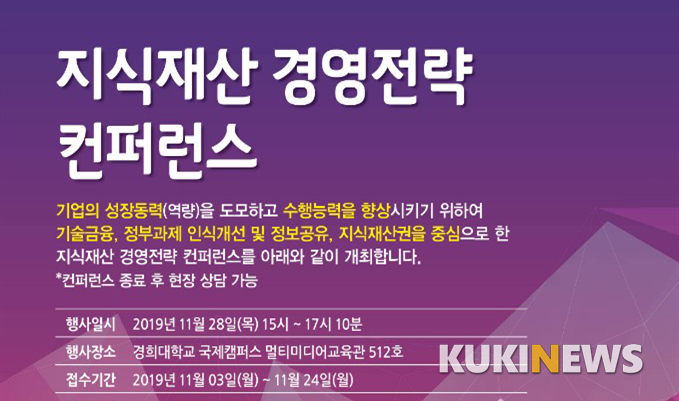 경희대학교 지식창업교육센터는 오는 28일 경희대학교 국제캠퍼스에서 '지식재산 경영전략 컨퍼런스'를 개최한다.