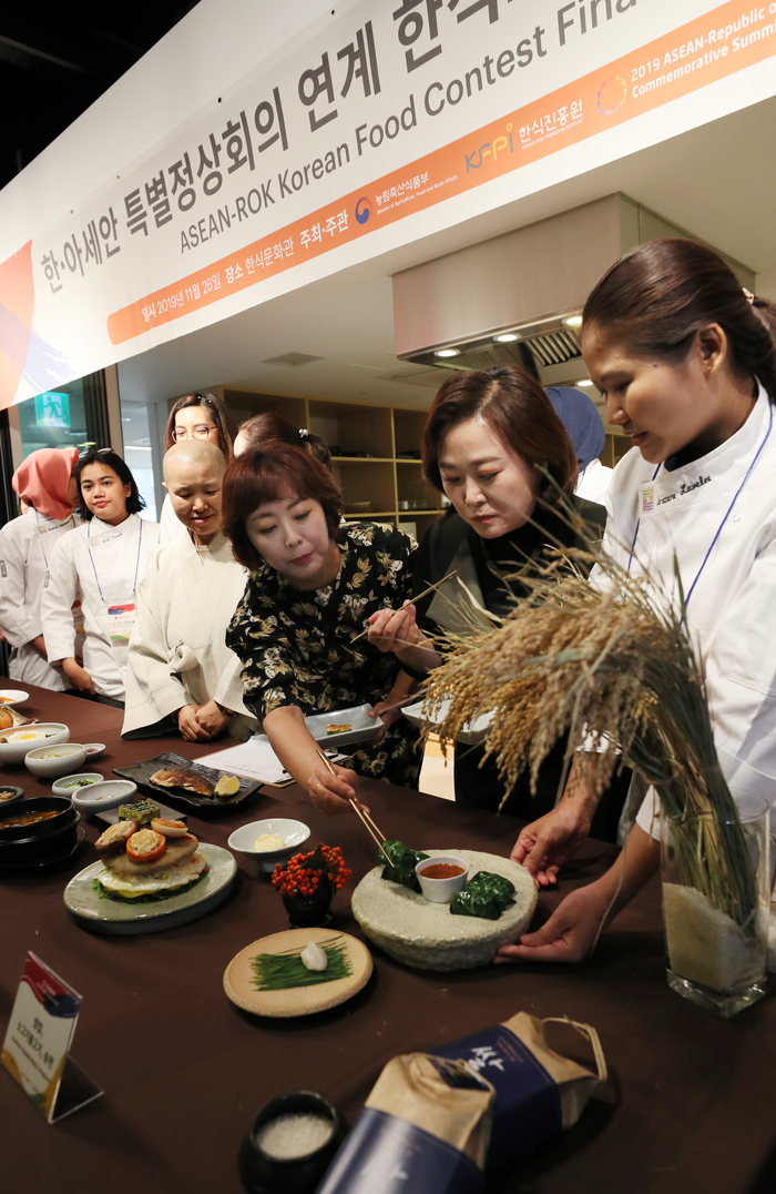 '2019 한-아세안 특별 정상 회의' 부대 행사로 열리는 이번 행사에는 올해 상반기 아세안 8개국의 예선 대회 우승자가 참여했다. 콘테스트 주제는 '쌀을 이용한 한식요리'로 맛과 구성, 창의성, 담음새 등 여섯 가지 기준을 통해 심사후 세 팀을 수상자로 선정한다.