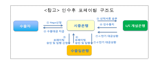기존에는 시중은행이 매입하기 전 수은이 사전 승인한 수출환어음에 한해 재매입이 가능했다. 인수후 포페이팅은 포페이팅 신청가능한 시기를 ‘인수통지서 접수 후’에도 가능하게 해 향후 수혜대상 수출기업 범위가 대폭 늘어날 전망이다.