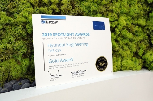 현대엔지니어링은 미국 LACP가 주관하는 ‘2019 스포트라이트 어워즈’에서 지속가능경영보고서 부문 금상을 수상했다고 5일 전했다.
