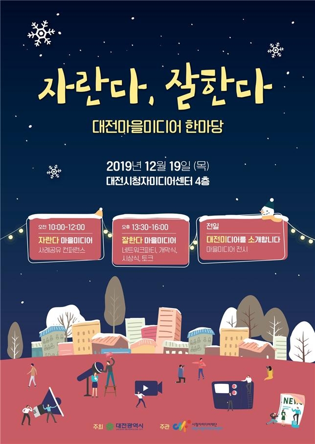 올 한 해 동안 대전 지역 마을미디어 활동을 돌아보는‘2019년 대전마을미디어 한마당’이 오는 19일 유성구 대전시청자미디어센터 4층 다목적홀에서 개최된다.