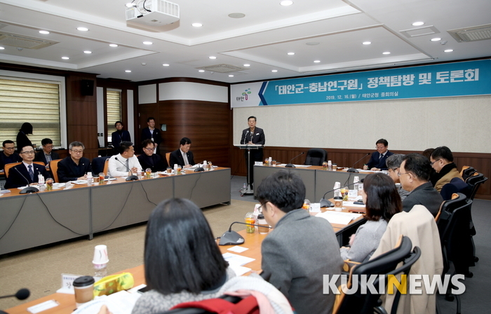 군은 지난 16일 충남연구원(원장 윤황) 관계자 및 군 관련 실·과장, 군정자문교수단 등이 모인 가운데 ‘태안군-충남연구원 정책탐방 및 토론회’를 실시했다.