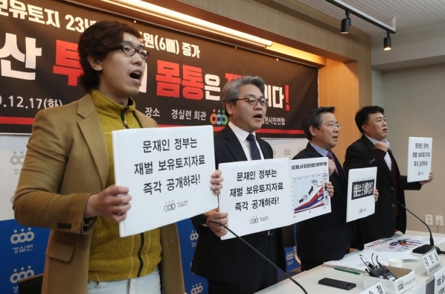 경실련은 “재벌의 부동산 투기 방지와 불로소득 환수장치가 부재하다 보니 본업에 주력하기보다 비생산적인 부동산 투기에 몰두하고 있다”며 “재벌의 땅 사 모으기는 아파트값 거품과 임대료 상승으로 이어져 중소상인에게도 피해를 주고 있다”며 “특히 재벌들이 비업무용·비사업용 토지를 보유해도 정부가 외면하고 있고 감시도 하지 않고 있다”고 밝혔다.