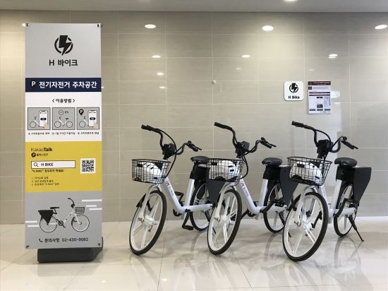 H바이크는 현대건설과 현대자동차의 협업 아이템이다. 하이브리드 배터리를 활용한 전기 자전거 공유서비스로서 대규모 단지 내 교통편의를 제공함과 동시에 에너지 절약에 도움이 될 것으로 기대하고 있다.