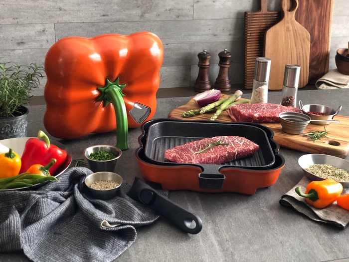 피망은 이탈리아 화덕의 '기능적' 축소판이라고 볼 수 있다. 3개의 팬으로 구성되어 있어 다양한 요리가 가능하다. 피망을 모티브로 한 디자인은 특허 등록되었다.