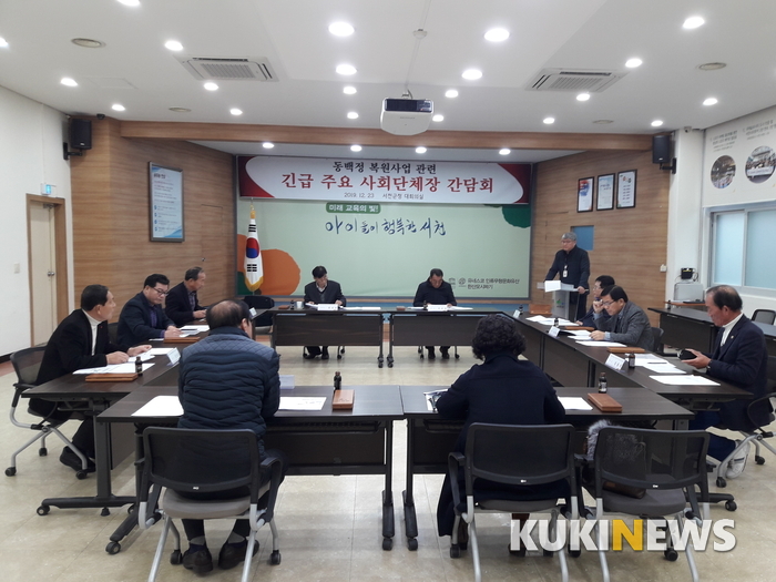 서천군(군수 노박래)은 지난 23일 서천군청 대회의실에서 서천군 주요 사회단체장 10여 명이 참석한 가운데 동백정해수욕장 복원 관련 긴급 간담회를 개최했다고 24일 밝혔다.