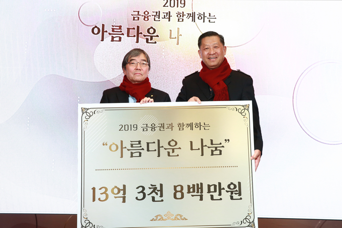 특히 올해에는 금감원 외에도 신한은행, 하나은행 등 10개 은행사, 교보생명, 삼성생명 등 9개사 보험사, 그리고 미래에셋대우, KB증권 등 3개 증권사, 신한카드, 하나카드 등 3개 카드사 등 총 26개 참여기관이 동참했다. 이에 따라 역대 최고 모금액을 기록하게 됐다.