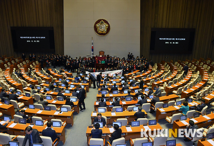 자유한국당, 본회의장에 '문정권 범죄은폐처 공수처' 현수막 설치