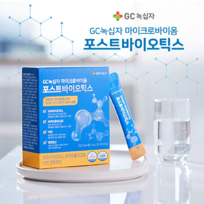 새롭게 출시된 ‘GC녹십자 마이크로바이옴 포스트바이오틱스’는 글로벌 유산균 전문기업 다니스코사의 특허받은 유산균 외 엄선된 7종 프로바이오틱스, 프리바이오틱스 3,000mg, 포스트바이오틱스(유산균배양건조물) 3종이 함유되었다. 식약처에서 4중 기능성을 인정받았다.