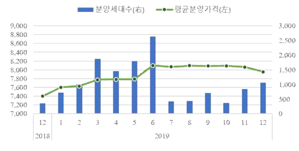 16일 주택도시보증공사(HUG) 민간아파트 분양가격 동향 조사에 따르면 2019년 12월 말 기준 서울 민간아파트의 최근 1년간 1㎡당 평균 분양가격은 795만5000원이다. 3.3㎡당 약 2625만원이다. 전월대비 1.3% 하락했고, 1년 전보다는 7.5% 상승했다.