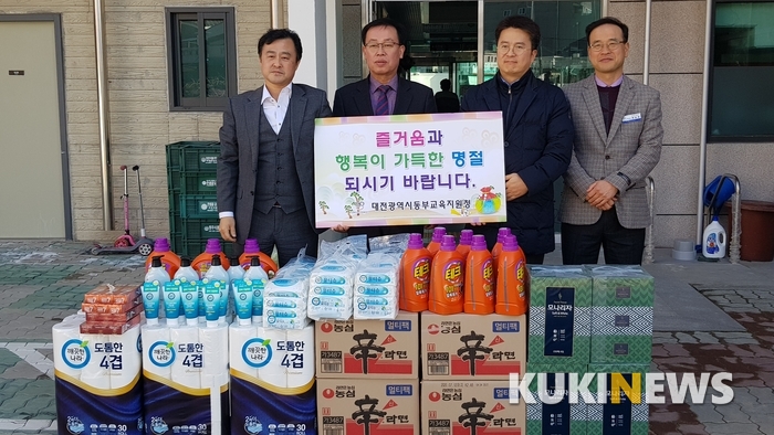 대전동부교육지원청 (교육장 유덕희)은 20일 사회복지시설을 방문해 위문품을 전달하고 이웃사랑 나눔을 실천했다. 이번 위문에서는 동구 가양동에 위치한 ‘평화의 마을’을 직접 방문해 어려운 여건 속에서도 밝게 생활하고 있는 아이들을 격려하고, 복지시설에서 직접 선정한 생활필수품 등을 전달했다. 평화의 마을은 아동청소년 양육시설로 미취학 아동, 초·중·고 학생 등 50여명을 수용하고 있는 사회복지시설이다.