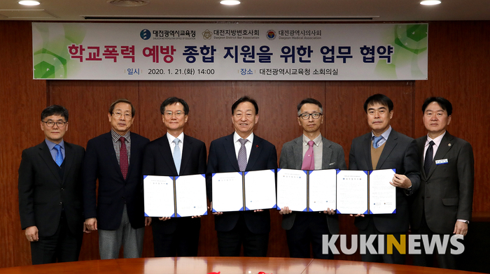 대전시교육청(교육감 설동호)은 21일 오후 시교육청에서 대전지방변호사회(회장 서정만), 대전의사회(회장 김영일) 등 2개 기관과 ‘학교폭력 예방 종합지원을 위한 법률·의료 지원 업무협약’을 체결했다고 밝혔다.