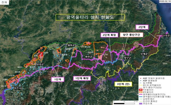우선 야생멧돼지의 남하를 차단하기 위해 춘천-소양강-인제 구간을 연결하는 3단계 광역울타리를 추가 설치하다. 화천에서 양구로 야생멧돼지의 동진을 차단하기 위해 3단계 광역울타리와 남방한계선을 남북으로 연결하는 양구 종단 울타리도 설치할 예정이다.