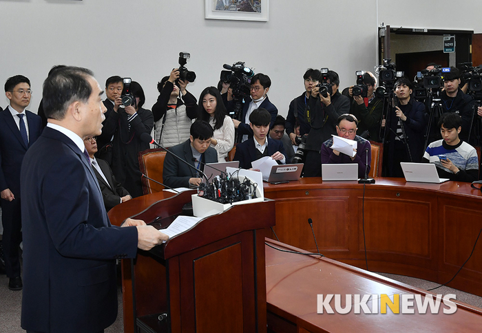 [쿠키뉴스] 박태현 기자 =태영호 전 주영 북한대사관 공사가 11일 오전 서울 여의도 국회에서 자유한국당 입당과 4·15 총선에서 지역구 후보 출마를 발표하고 있다.