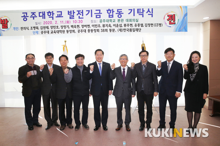 [공주=쿠키뉴스] 홍석원 기자 = 공주대학교(총장 원성수)는 11일 대학본부 10층 대회의실에서 13명의 교수와 3개 단체로부터 총 5억원 대학 발전기금 합동 기탁식 행사를 가졌다.