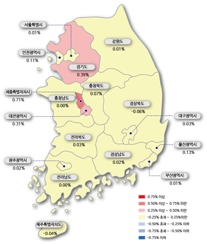 다만 강동구(0.00%)는 신규 입주물량 영향으로 보합 전환했다.