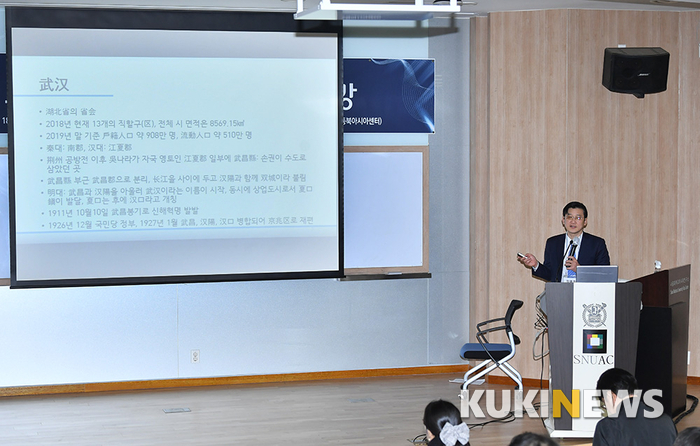 [쿠키뉴스] 박태현 기자 =정종호 서울대 국제대학원장이 18일 오후 서울 관악로 서울대학교 아시아연구소에서 열린 '코로나19 사회적 충격과 전망' 좌담회에서 발언하고 있다.