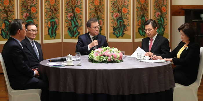 문 대통령과 더불어민주당 이해찬·미래통합 황교안·민생당 유성엽·정의당 심상정 대표는 28일 국회에서 회동한 뒤 정부와 ‘국회 코로나19 대책 특별위원회'가 협력하기로 합의했다고 밝혔다.