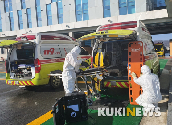 관련 환자를 이송한 뒤에는 감염방지복 등을 이송병원에서 의료 폐기물로 처리하며, 소독제품을 사용해 구급장비와 차량 안팎을 모두 소독한다.