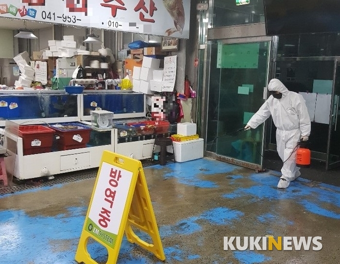 인근 지자체에서 발생한 확진환자 방문으로 지난 26일 폐쇄됐던 서천특화시장은 살균 소독을 강화해 안전망을 구축한 상태로 1일 재개장했다.