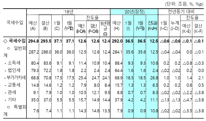 1월 국세수입이 지난해 동월 대비 줄어든 건 2013년 이후 처음이다.