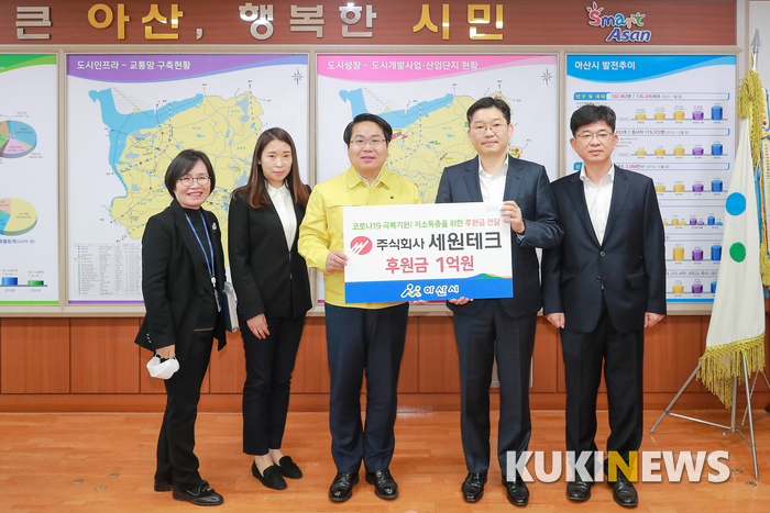 [아산=쿠키뉴스] 홍석원 기자 =세원그룹(김문기 회장)은 코로나19 극복을 위해 대구시와 경상북도, 계열사가 있는 충남 아산시 지역민들에게 김문기회장 개인 성금을 합하여 13억원을 지난 16일 사회복지공동모금회를 통해 전달하였다.