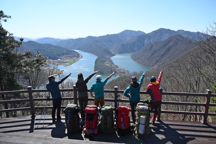 [옥천=쿠키뉴스] 명정삼 기자 = 봄을 맞아 충북 옥천 관광명소 1경 둔주봉 한반도 지형을 찾는 관광객이 부쩍 늘고 있다.