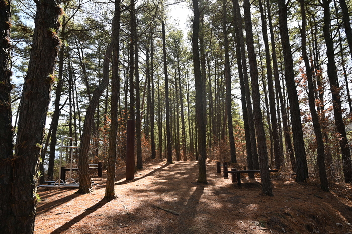 계단을 올라 오솔길에 접어들면 솔향기가 온 몸을 감싼다. 대나무처럼 곧게 뻗은 주변 소나무들이 뿜어내는 향이다. 오르는 걸음걸음 바닥에 가득 쌓인 솔잎이 발까지 행복하게 만든다.