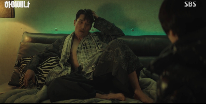 세상 어딘가에 한국 영화와 드라마 속 재벌가 자제를 망나니로 키워내는 사관학교 같은 것이 있는 건 아닐까. ‘하이에나’에서 이슘 그룹의 후계자이자 이슘 홀딩스 대표인 하찬호는 막나가는 재벌 3세의 전형이다. 그는 내연녀가 없으면 제정신으로 살지 못한다. 헤어지자는 말에 여자를 감금·협박하고, 그가 떠나자 정신이 반쯤 나가 술과 약에 찌들어 산다. 심지어 자신이 싼 똥, 아니 자신이 저지른 문제들을 해결해주는 변호사 정금자(김혜수)에게도 툭하면 폭언에 갑질을 일삼는다. 하지만 과연 정금자가 떠나면 손해인 건 하찬호일까 정금자일까? 어쨌든, 자신은 서민들과는 다르다는 선민의식과 “아버지가 원하는대로 다 해드렸잖아요. 나도 내가 원하는 거 하나는 가질 수 있잖아요”라며 눈물을 흘리는 자기연민까지 갖춘 이 남자. ‘하찬호’라는 이름이 ‘하찮아’와 비슷하게 발음되는 건 과연 우연일까.