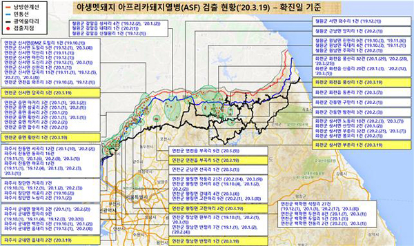 국립환경과학원에 따르면 해당 폐사체는 광역울타리 내에서 발견됐다. 19일 폐사체 16개체에서 아프리카돼지열병 바이러스를 확진한 국립환경과학원 측은 해당 결과를 관계기관에 통보했다.