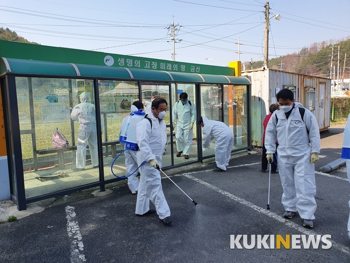 [금산=쿠키뉴스] 홍석원 기자 =금산군의회는 지난 24일 김종학 의장 및 군의원, 의회사무과 직원 등 16명이 참여해 코로나19 예방 방역소독활동을 전개했다.