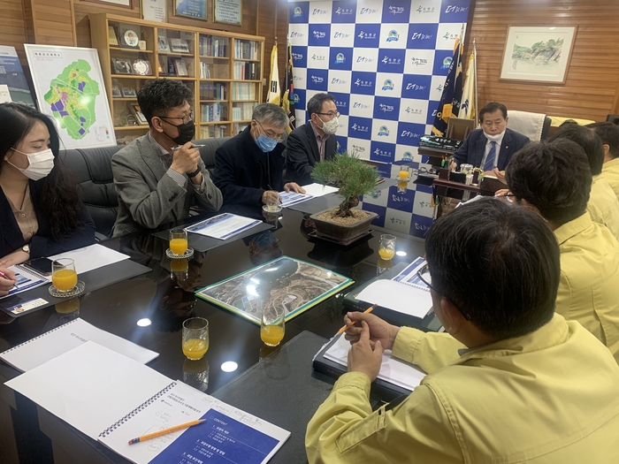 최근 사회적 거리두기 영향으로 외부 인사 초청 없이 김재종 옥천군수와 김연준 부군수, 건축학 교수, 역사학 전문가, 용역기관 관계자등 9명이 참석했다.