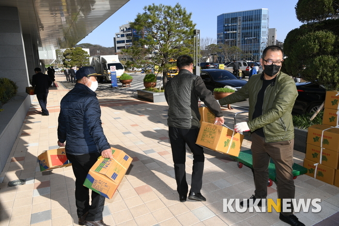 이와 함께 관내 기업체에 26만원 상당의 열무 65박스와 16만원 상당의 솎음배추 41박스, 꾸러미 103박스를 각각 학교급식지원센터 배송업체 차량을 이용하여 직접 배송했다.