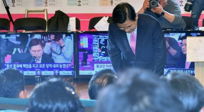 황교안 대표는 종로 패배로 국회에서 별도 회견을 통해 “모든 책임은 내가 짊어지고 가겠다”며 “총선 결과에 대해 책임을 지고 모든 당직을 내려놓겠다”며 대표직 사퇴를 선언했다.