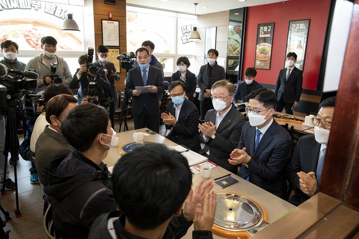 이번 방문은 업무협약 이후 첫 공식 일정으로 이 지사가 공공배달앱의 선도적 사례로 일컬어지는 '배달의 명수' 운영현장을 찾아 이용현황과 장단점 등을 직접 확인하기 위해 마련됐다.