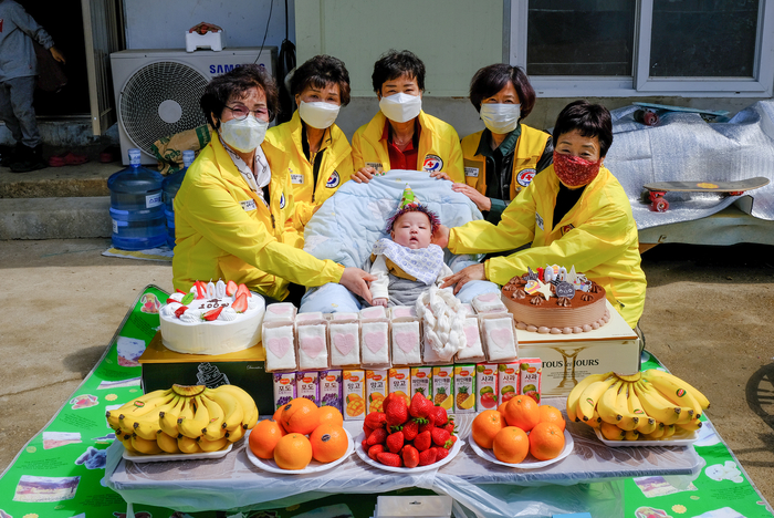 [영동=쿠키뉴스] 명정삼 기자 = “9남매 다둥이네 막둥이 백일상은 꼭 우리 회원님들이 함께 와서 손주처럼 축하해 줍시다.”