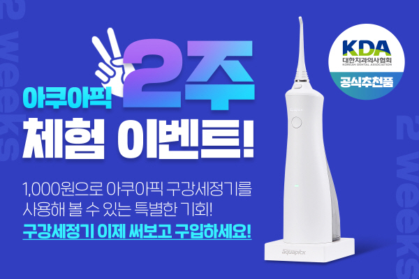 한편 해당 이벤트에서 제공되는 구강세정기는 대한치과의사협회 공식 추천품인 아쿠아픽의 코드리스 구강세정기 ‘AQ-230’ 모델이다.