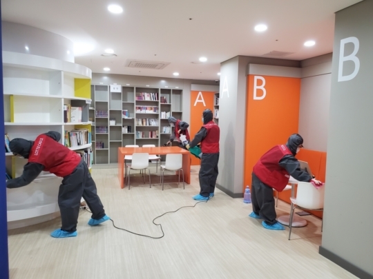 이날 실시한 방역 서비스는 방역 전문 파트너사를 통해 어린이 도서관, 노인정, 커뮤니티 시설, 주 출입로, 관리사무소 등 입주민이 공동으로 사용하는 장소를 살균한다.