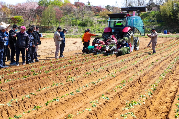 [당진=쿠키뉴스] 명정삼 기자 = 충남 당진시는 고질적인 고구마 재배의 일손부족 해결과 생산비 절감을 위해 고대면 장항리 고구마 밭에서 50여명의 고구마 재배농가와 농기계 관련 농협직원, 공무원들이 참석한 가운데 고구마 정식기 시연회를 가졌다고 24일 밝혔다.