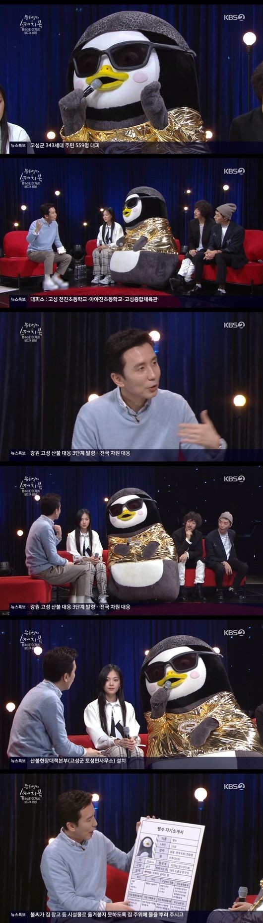 이날 유희열은 “데뷔 7일차된 래퍼를 소개하겠다. 키는 2m가 넘고 사람이 아니다”라고 펭수를 소개했다.